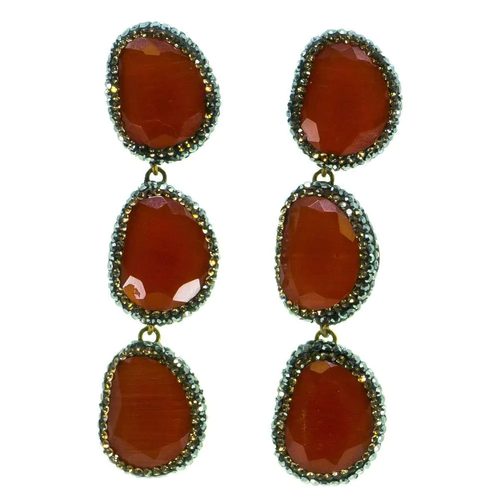 Aros de piedra natural facetada rodeado de cristales swarovski en color. Ideal para un evento de día o noche.Destacando la elegancia y encanto de tu look. Algunos modelos vienen con una pequeña línea dorada. Todos los productos son únicos y exclusivos de Las Juanas Night.
