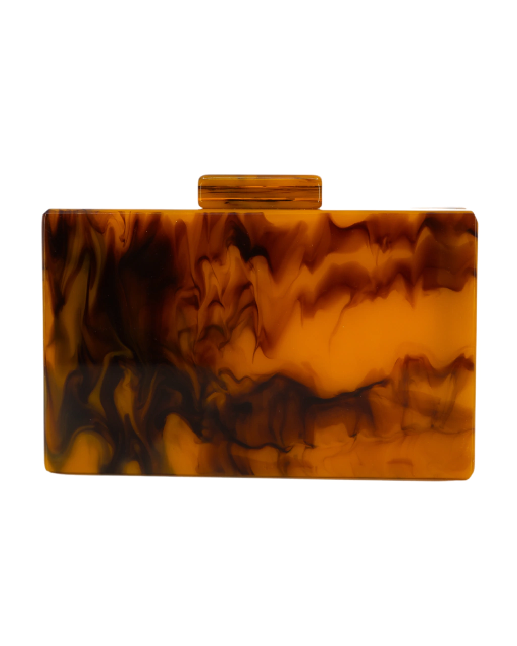 Material: Resina Italiana de alta calidad. Color: Naranja terroso combinado con chocolate, una paleta cálida y sofisticada que aporta elegancia y versatilidad a tu look. Medidas: Aproximadamente 18 x 11 cm, ideal para llevar tus esenciales con estilo y comodidad.