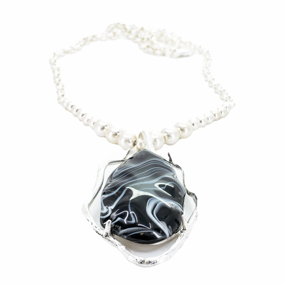 Collar realizado en metal opaco con una piedra central de resina en color negro, forma de gota combinado en plata y negro,el cual se destaca con su largo y también corto que nos da un look actual y alegre . Se puede regular el largo. Todas nuestras piezas son únicas y exclusivas de Las Juanas Night.
