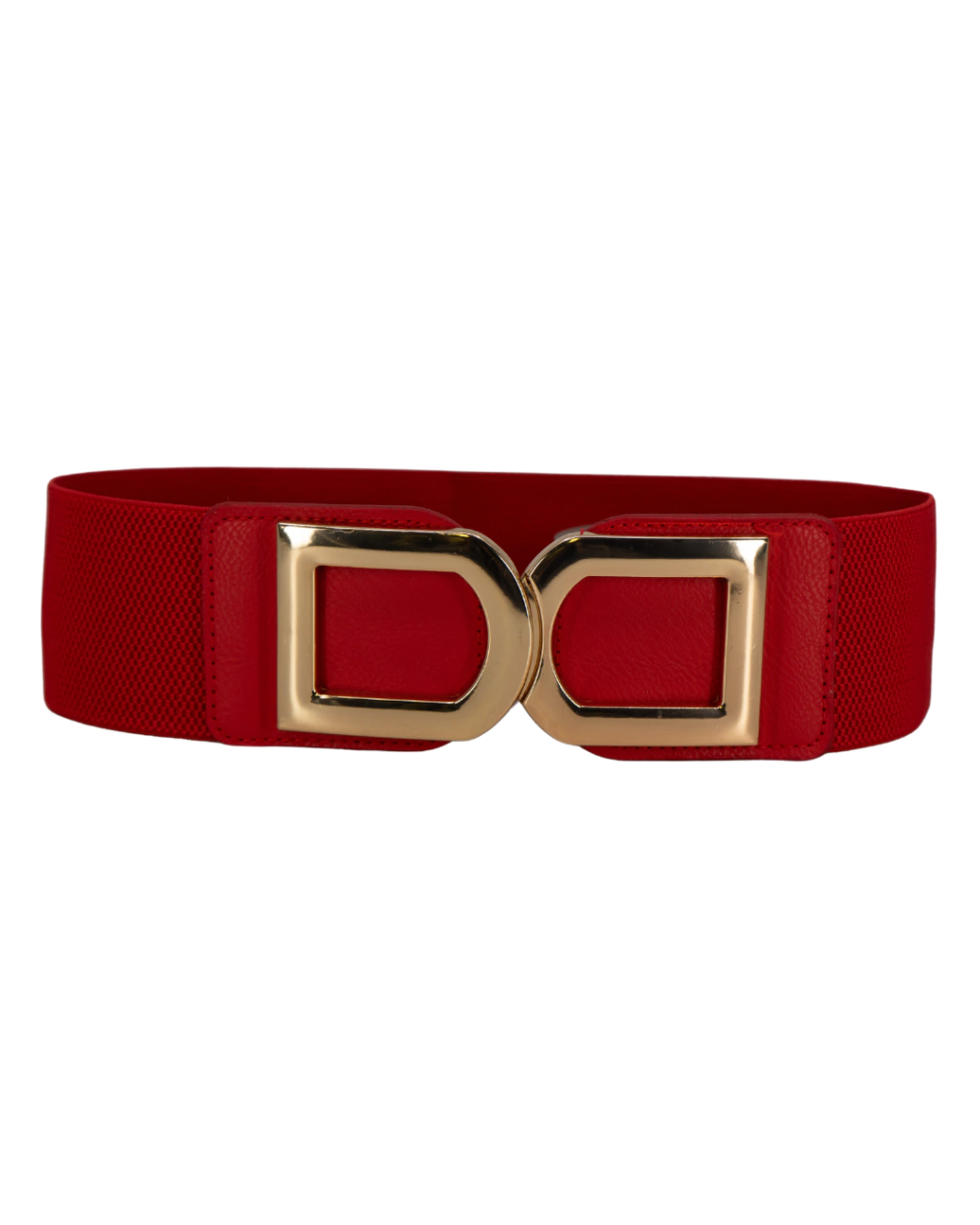 Material: Faja elástica de alta calidad en color rojo. Detalle: Hebilla dorada que combina estilo y comodidad. Medidas: Diseño adaptable y versátil, ideal para diferentes talles y estilos.