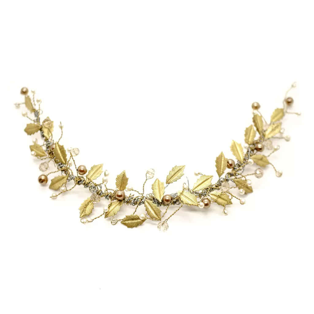 Tocado realizado a mano, estilo media corona, combinación de dorado, plata y bronce. Muy moderno y original. Muchos de nuestros tocados son armados por nuestro taller, se pueden mandar a preparar y armarlos de manera mas personalizada. No dudes en consultarnos.